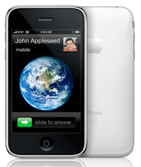Of course, the most exciting announcement (but the least geeky for a developer conference) was an updated iPhone with 3G wireless support. The phone looks a bit sleeker with the tapered edges and black plastic back, but is just a tiny bit thicker. The recessed headphone jack is gone, so you can listen to your music with any headphones you like without an adapter. Plus, the best news is that the 8GB iPhone is $199 and the 16GB is only $299, although we'll talk a bit more about that later. The back of the iPhone is a black plastic and the 16GB ones are alwo available with a white back.