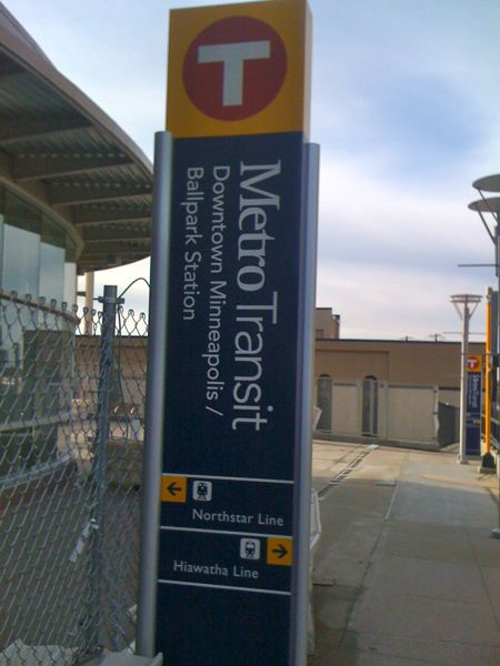 I do find it odd that the sign on the station says "Hiawatha Line", mostly because in four years this station (and all downtown Minneapolis stations) will serve both Hiawatha Line trains as well as Central Corridor trains to St. Paul. Will they take down that sign in four years or add another one? Or will they keep it up and it will confuse game attendees?