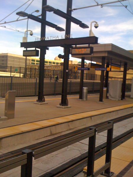 Last weekend, before attending the Mute Math concert, I took a walk down the newest couple of blocks in MetroTransit's first light rail line, the Hiawatha Line. I snapped a couple photos and had some interesting observations that I wanted to mention.