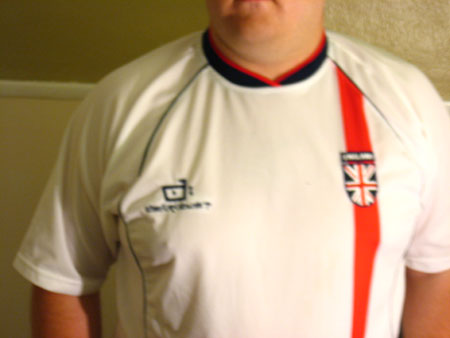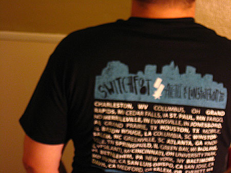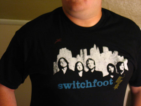 Today, I'm starting off a new feature. Every couple days (or whenever) I will post a T-shirt that I currently own and am actually currently wearing. (The picture may have been pre-recorded, though, on account of not carrying around a good camera at all hours of my life.) I'll post a couple comments on the shirt and then give you a little background on where it came from. And just to make sure I can outdo myself, I'm going to do one of my most boring shirts first! Without further ado, here's the first one: